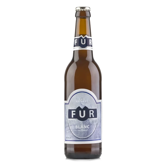 FUR - BLANC är en klassisk veteöl med 4,8 % alkohol, som kommer i en praktisk 33 cl glasflaska. Den blå och silverfärgade etiketten med den karakteristiska FUR-logotypen ger flaskan ett igenkännbart uttryck.